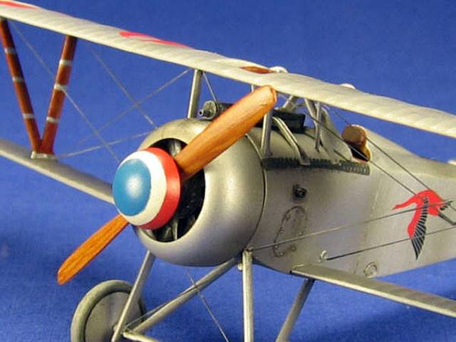 Inicialmente atiravam por cima da hélice. Depois o piloto francês Roland Garros (herói de guerra que mais tarde foi homenageado no célebre torneio de tênis que leva seu nome) colocou a metralhadora atrás da hélice e blindou as pás de hélice por trás, incorporando também um defletor para os projéteis que nela batiam, de forma a evitar que um ricochete atingisse o piloto ou o avião. Isso possibilitou disparar a metralhadora na frente do piloto, melhorando a pontaria.