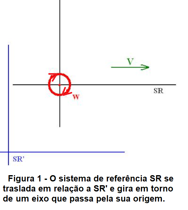 A figura 1 representa um sistema de referência SR que gira em torno da sua origem e simultaneamente se traslada em relação ao sistema de referência SR’.
