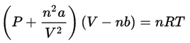 Para temperaturas superiores à temperatura crítica, dado que a densidade do gás é elevada no interior da garrafa, a conhecida Equação Geral de Estado para um Gás Ideal não pode ser utilizada. Uma melhor aproximação para gases densos em pressões altas é a Equação de Estado de van der Waals dada abaixo, onde P, V, T e n são as bem conhecidas variáveis de estado (pressão,volume, temperatura, número de mols) e os parâmetros “a” e “b” são as chamadas constantes de van der Waals que dependem da susbstância (neste caso nitrogênio).